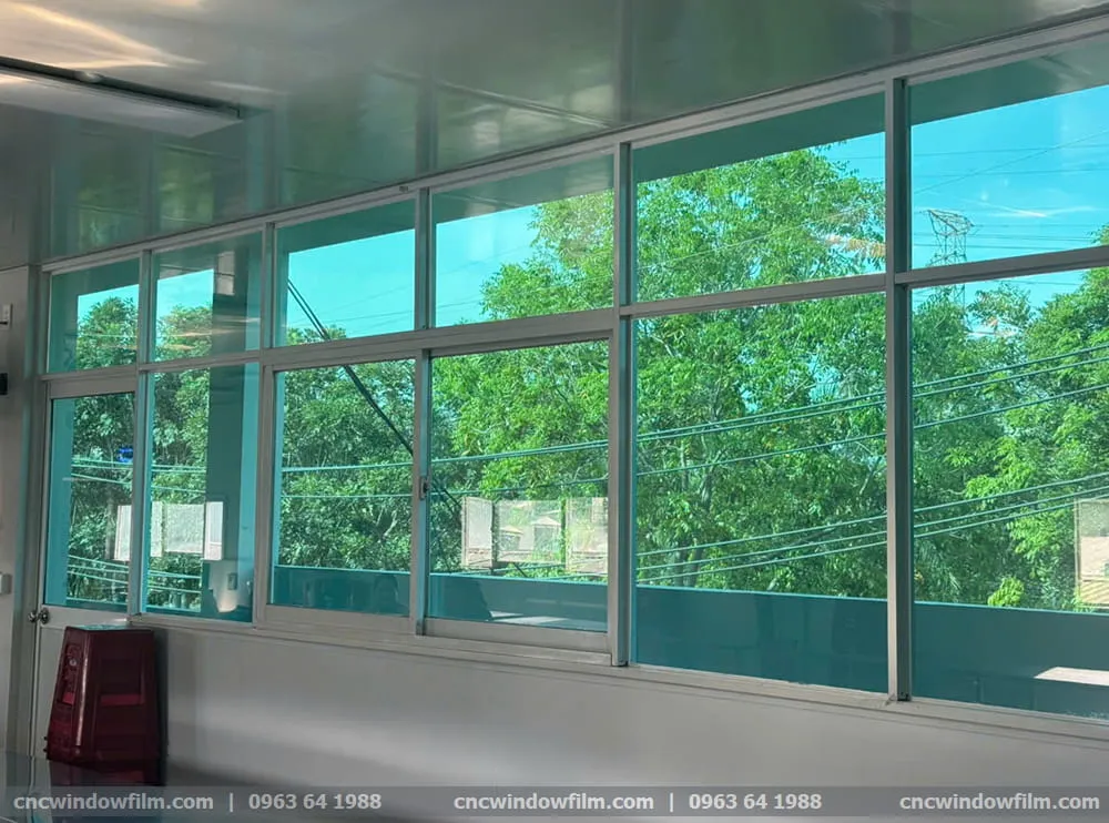 Dòng phim cách nhiệt đổi màu kính này khi được dán bên trong thì vách kính bên ngoài đổi màu xanh lá nhẹ sang trọng và thẩm mỹ cao, với các phim giá rẻ là dòng nhuộm màu thì màu xanh bay màu rất nhanh chỉ được vài tháng, nhưng dòng phún xạ kim loại này thì thực sự bền bỉ.