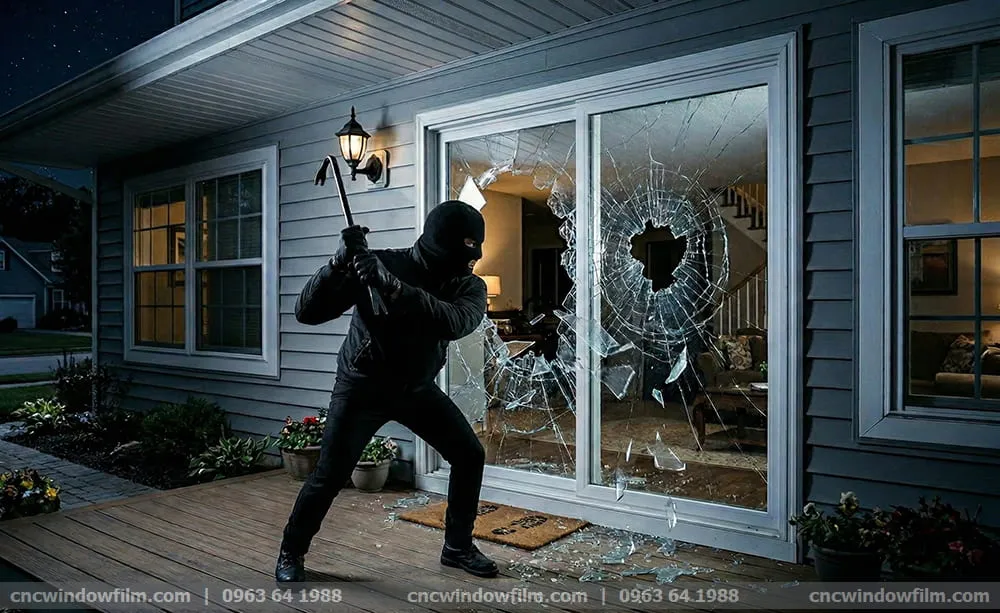 Phim bảo vệ Safety Chống đột nhập – Tăng thời gian phá kính. Và chính “thời gian trì hoãn” đó là yếu tố khiến kẻ gian bỏ cuộc. Phim Safety bảo vệ an toàn cho bạn khi bị kẻ xấu đột nhập: