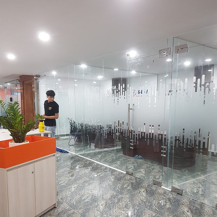 Dán kính mờ theo thiết kế tại văn phòng công ty GCW