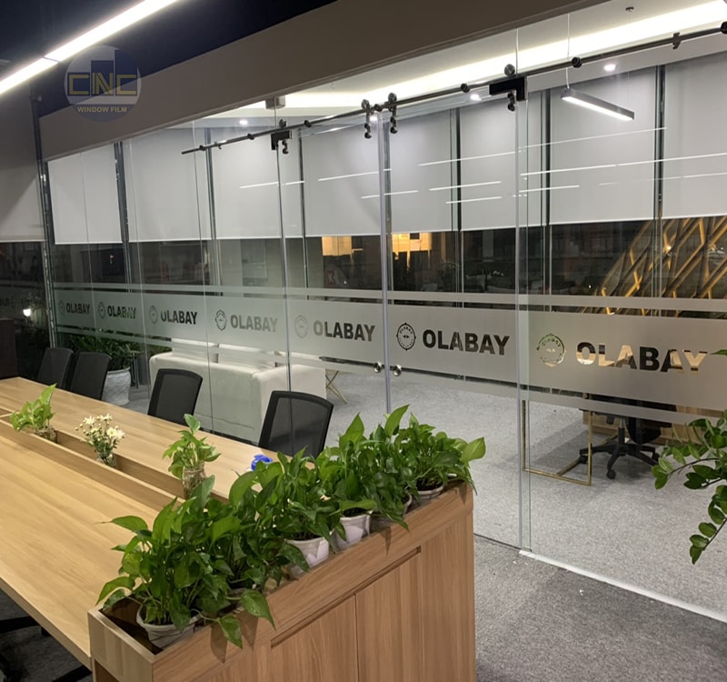 CNC Window Film đã triển khai dán hoàn thiện trên toàn bộ các vách kính của Olabay chỉ trong 1 ngày. Giấy dán kính mờ sử dụng loại Taiwan sản xuất, dày hơn và mờ mịn hơn cùng với chất lượng keo phủ tốt sau khi thi công lắp đặt hoàn thiện rất mượt mà không có 1 gợn lỗi nào xảy ra.