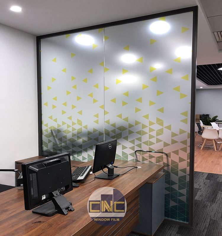 CNC Window Film sử dụng phim mờ in hoa văn để dán lên các vách kính tạo nên những không gian làm việc riêng tư và ấn tượng. Một văn phòng chất lượng cao đã được hoàn thiện tỷ mỷ từng góc cạnh.