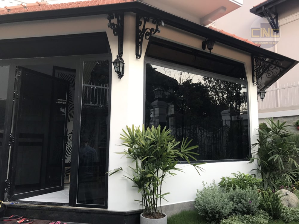 CNC Window Film đã triển khai dán kính cách nhiệt cho biệt thự với yêu cầu màu đen tối màu, bên trong nhìn ra trong bình thường để vừa chống nóng vừa hạn chế tầm nhìn để bên trong được riêng tư hơn.