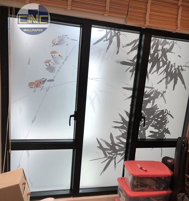 Tranh dán vách kính che mờ và trang trí, có tác dụng lấy sáng tự nhiên mà vẫn đảm bảo riêng tư, những bức tranh chủ đề truyền thống như tre trúc, tùng cúc trúc mai là chủ để rất phù hợp, những bức tranh mộc mang hồn quê việt vào ngôi nhà của bạn.