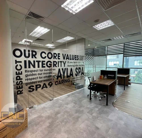 Thiết kế dán kính văn phòng tinh tế với vật liệu in UV chi phí rẻ, bền đẹp lâu dài